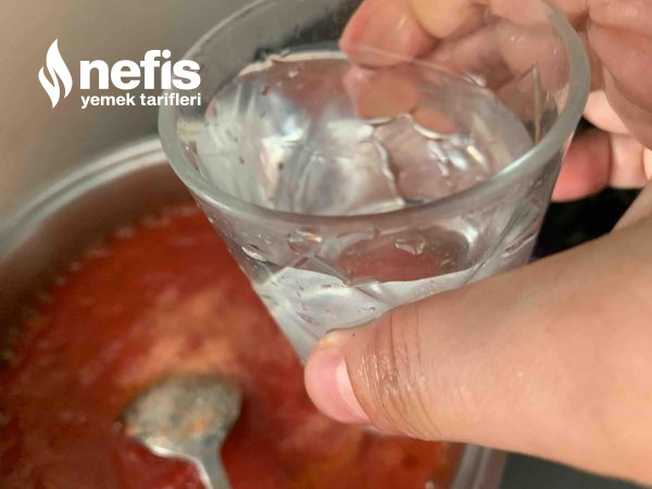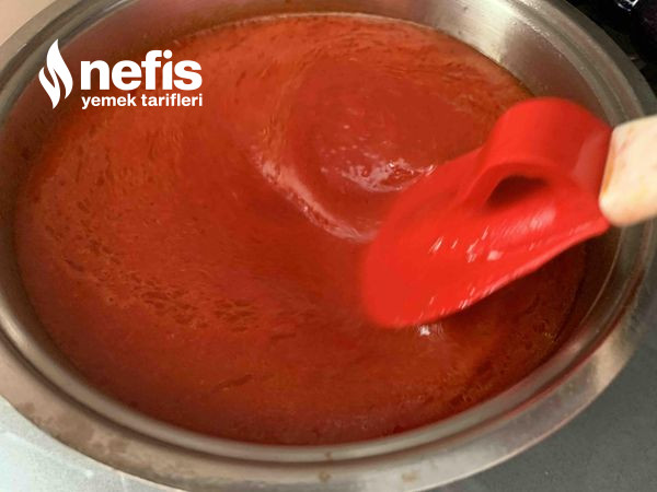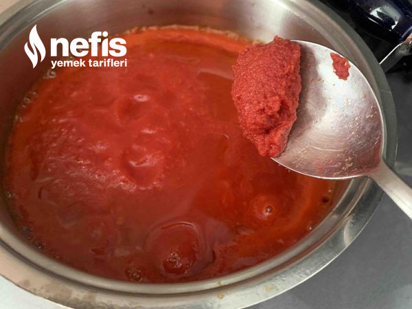 - Sosu için tenceremize yağımızı,domates rendesi ve salçayı alarak kavuralım, üzerine su ve tuzu ek ederek bir taşım kaynatalım.