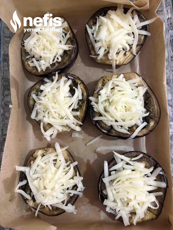 - Patlıcanların üzeri kızarıp içleri yumuşayınca fırından alalım, kaşık yardımıyla içlerini bastıralım ve rendelenmiş kaşar peyniri koyalım tekrar fırına verelim.