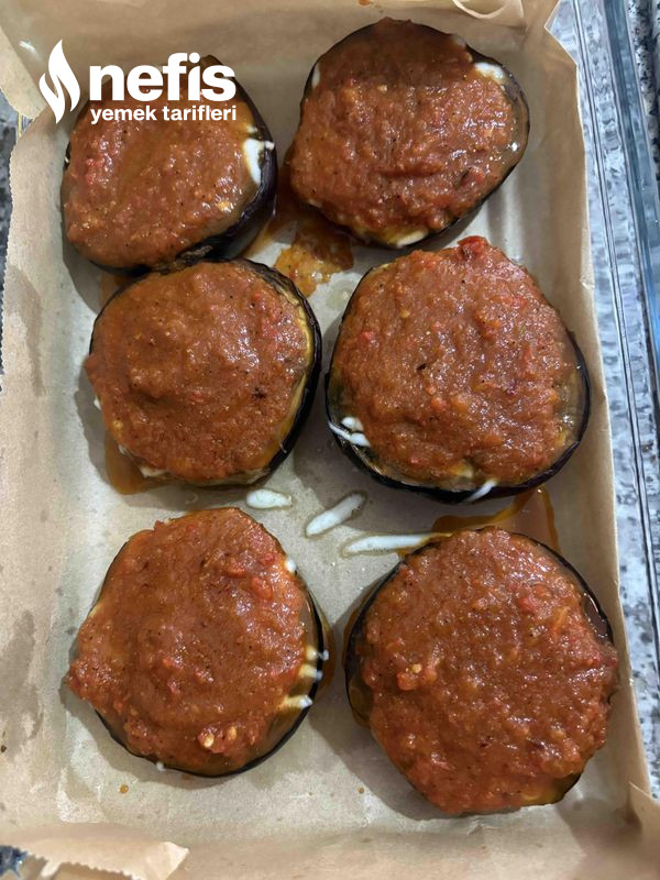 - Kaşarlar eriyince patlıcanları fırından çıkaralım domates soslarını üzerlerine paylaştıralım domateslerin üzerine kızaran köftelerimizi koyalım.