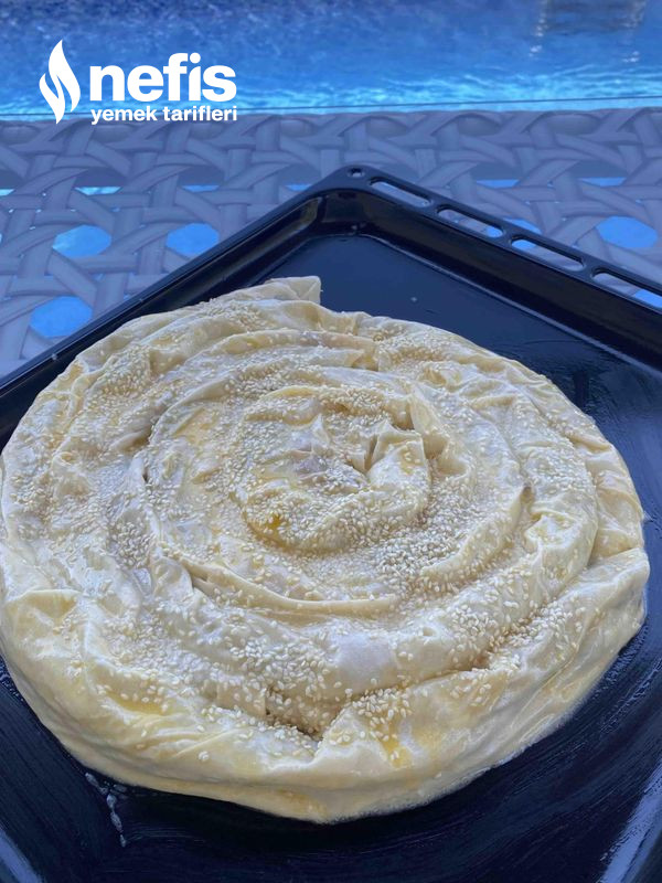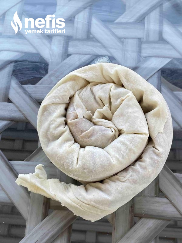 - Diğer yufkalarada birebir süreci yapın ve birinci yufkanın etrafına sara sara tüm yufkaları tepsiye dizin.