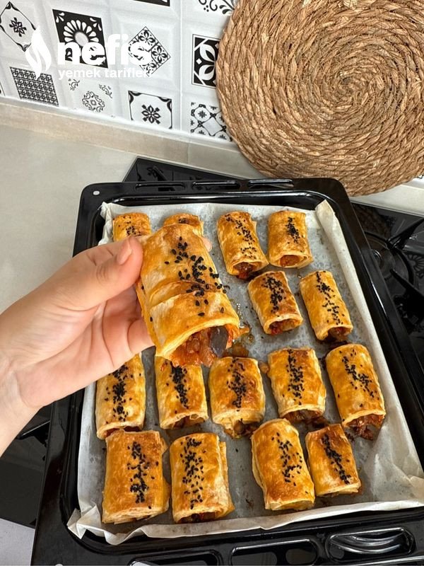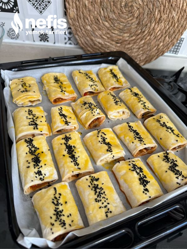 6. Daha sonra belli aralıklarla keserek yağlı kağıt serdiğimiz fırın tepsisine börekleri yerleştirelim.