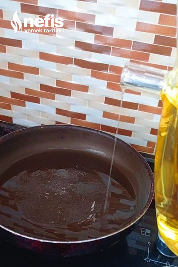 - Daha sonra patlıcanı görsel de olduğu üzere yuvarlak keselim ve ocağın üzerine uygun bir tavamızı alalım sıvı yağ ekleyelim ve sonra kestiğimiz patlıcanı tavamıza ekliyelim .