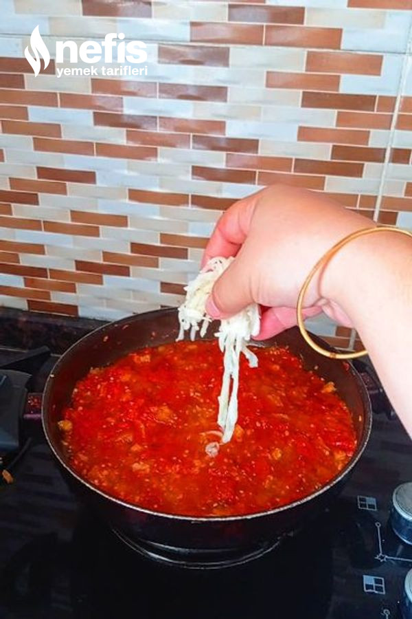 - Baharatları da ekleyip karıştıralım ve 1-2 cins karıştırıp üzerine rendelenmiş kaşar peyniri gezdirerek sıcak servis edilmeye hazır 😋.