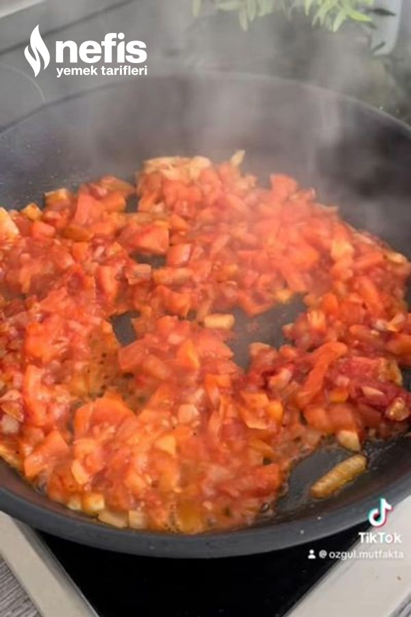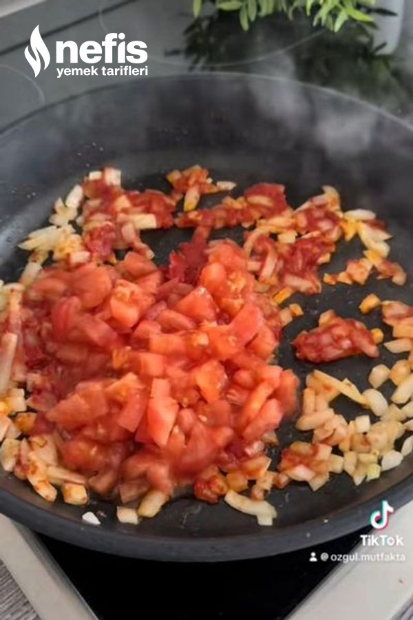 • 1 adet orta uzunluk domates (kabuğu soyulmuş küp doğranmış)