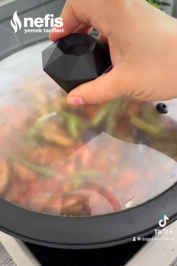 8. Son olarak üzerine 1 su bardağı su ekleyip kapalı biçimde 15-20 dakika orta ateşte pişmeye bırakalım.