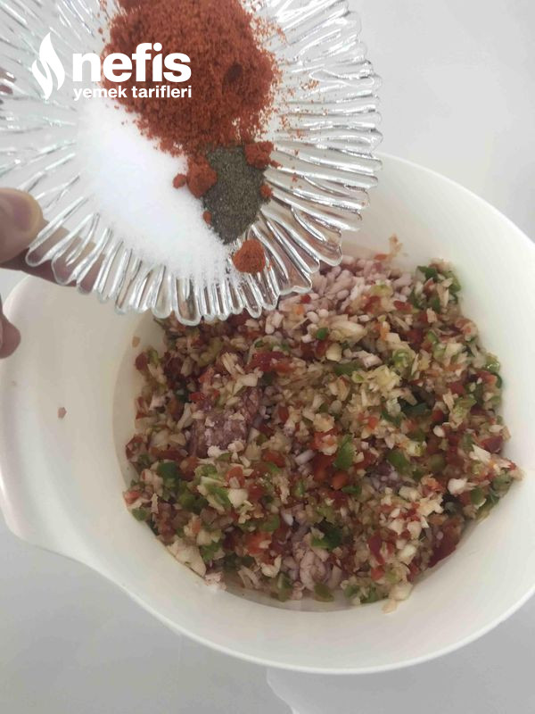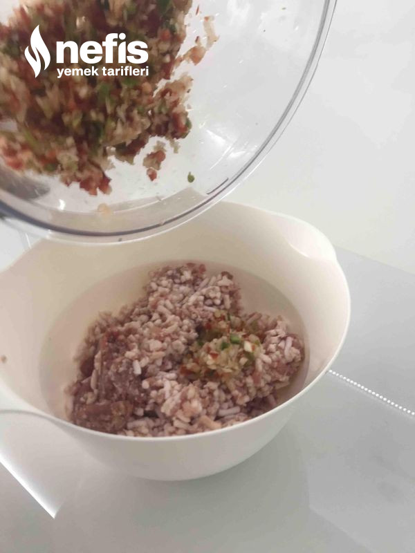 1. Soğanı, ve biberleri rondodan geçirip kıymaya ek edip yoğurdum. Modüller alıp yuvarlak formuna getirdim.