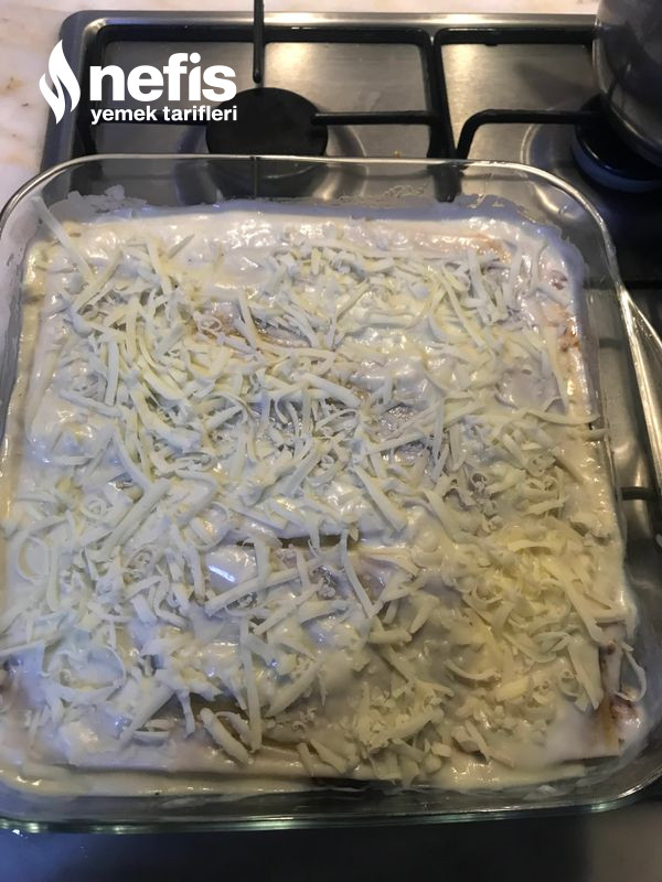 - Lazanya yapraklarından dizelim üstüne beşamel sosunu yayalım. Gereç bitene kadar bu biçimde devam edelim.