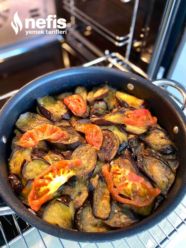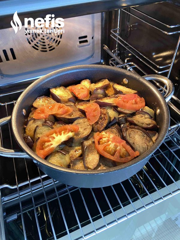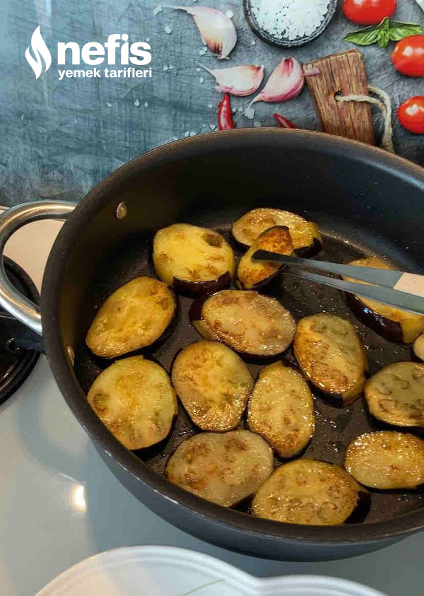 - Onun üzerine kızartılan patlıcanlar dizilir.
