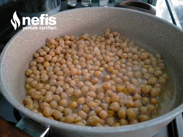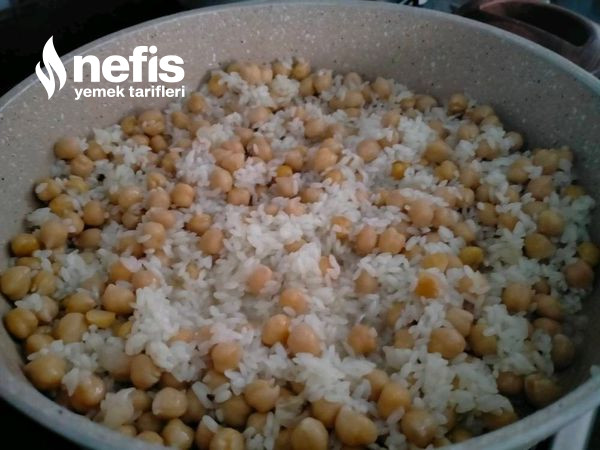 4. Tencereye yağları atın nohutu ekleyip bir iki cins karıştırın süzülmüş pirinçi ek edip kavurun,şekeri ve limon suyunu verin.