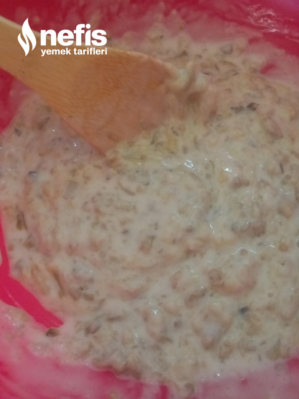 - Kabımıza patlıcan rendelenmiş sarımsak yoğurt tuz ekleyip karıştırıyoruz.