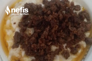 - Ardından tabaklara servis edip kıymasını üzerine gezdiriyorum. Afiyet olsun.