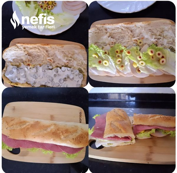 - Ekmeğe evvel peşto sosu sonra mayonezli sosu sürdüm üstünede hazırladığımız başka materyalleri sırayla koyarak sandviçi hazırladım. Dilerseniz farklı soslarla farklı içeriklerle deneyebilirsiniz. Afiyet olsun.