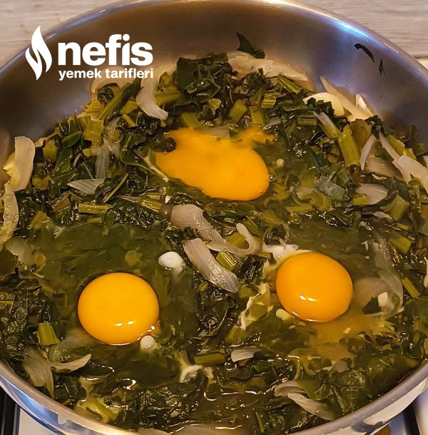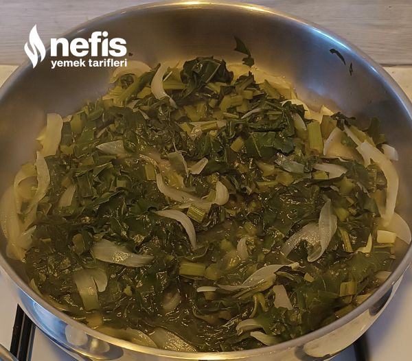 6. Kavrulan soğanların ve sarımsakları üstüne doğradığımız pazıları ve yaş naneleri yoksa kuru nane ek edip yumuşayana kadar pişiriniz.