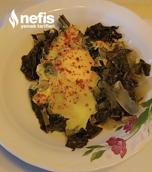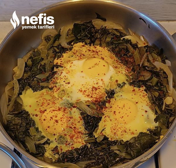 8. Bu halde kısık ateşte yumurta pişirene kadar pişirilir. Üzerine son olarak pul biber serpilir. Biraz dinlendikten sonra servis yapılır.
