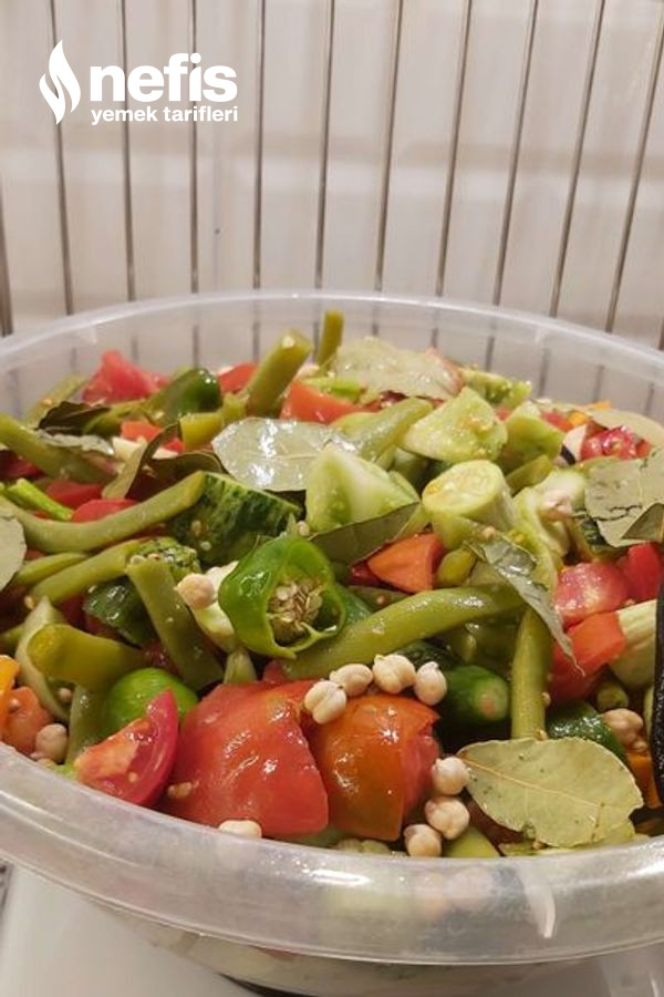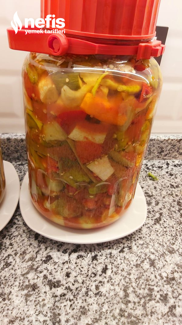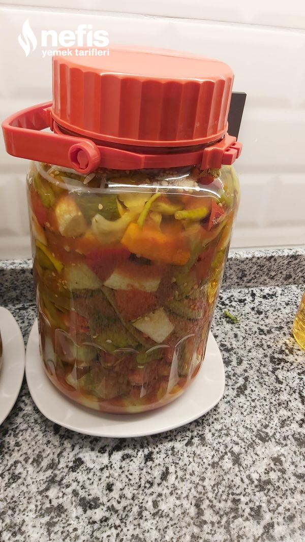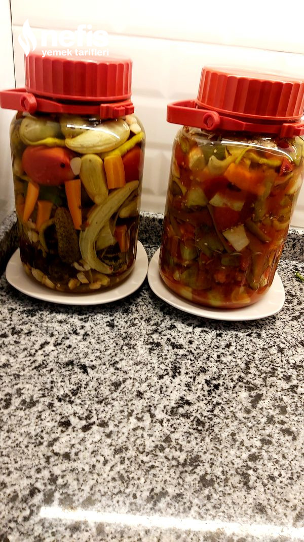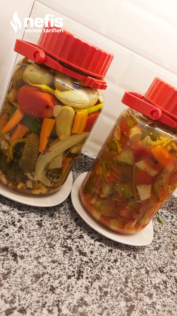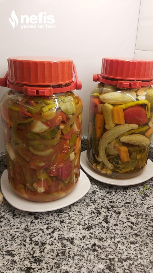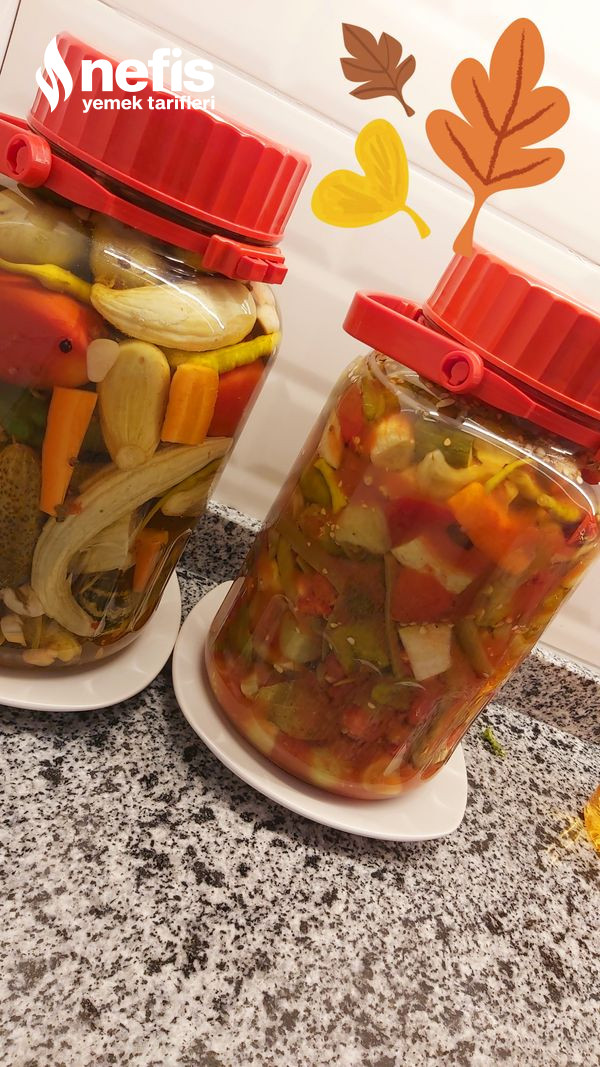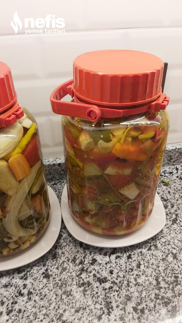 Not:aynı ölçülerle 1 kavanozda doğramadan turşu yaptım küçük kelekleri salatalığı ajuru domatesleri biberleri doğramadan kürdan batırdım kavanoza dizdim birebir tarifle yaptım.