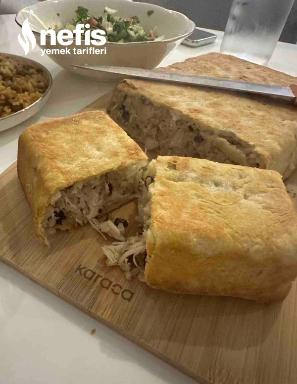 16. Pilavı hamurun üzerine ekleyin ve ayırdığınız hamurla üzerini kapatın.
