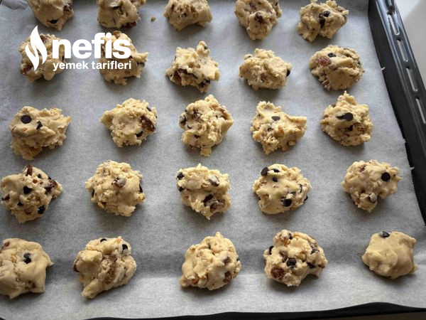 - Yumuşak bir hamur elde edelim, yağlı kağıt serili fırın tepsisine hamurdan ceviz büyüklüğünde bir tutam alıp tepsiye bırakalım sırayla dizelim, hamur modüllerini düzeltip biçim vermeye gerek yok.