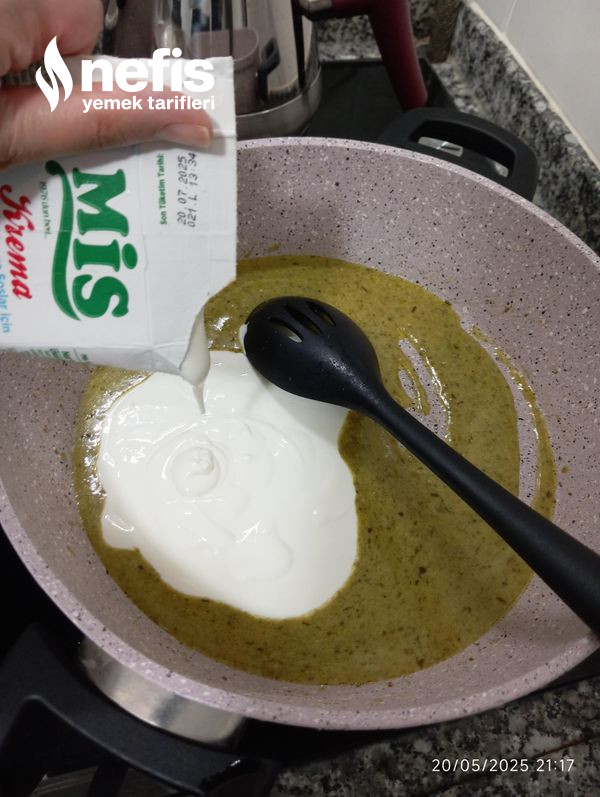 - Sıvı kremayı da ek edip tekrar karıştırıyoruz lakin kremayı ekledikten sonra kaynamadan ocağı kapatıyoruz.