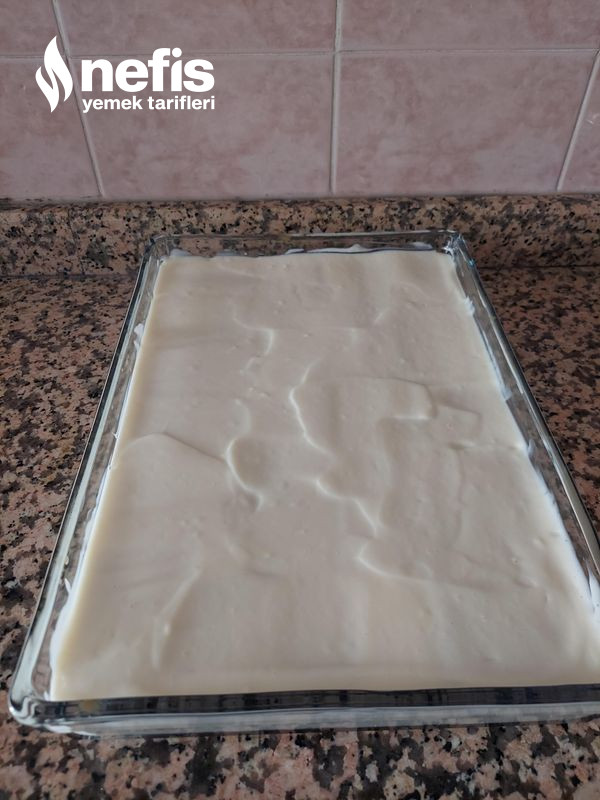 - Borcama bisküvileri ıslatıp diziyoruz çok ıslatmayın. Üzerine kremayı dökün ikinci ve üçüncü katı da tıpkı halde yapın.