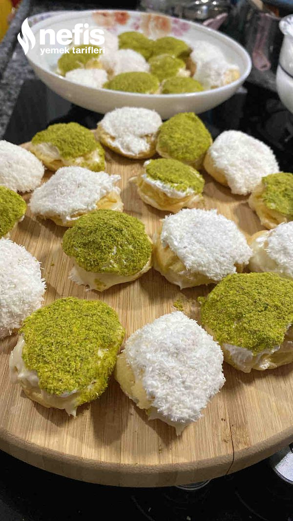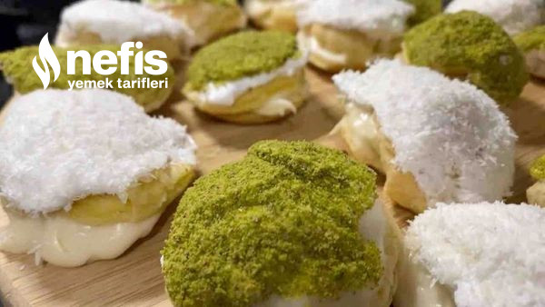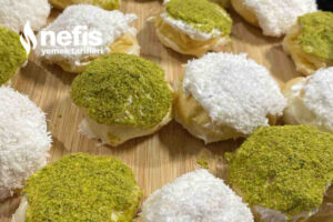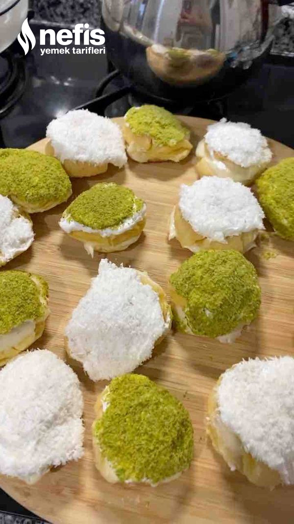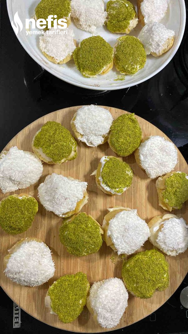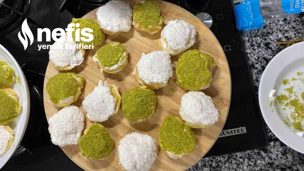 - Üst kısımları yani kapakları eritilmiş çikolatalara,ardından dileğe nazaran hindistan cevizi,kıyılmış çikolata yada yeşil fıstığa batırılarak kremaların üzerlerine oturtulur.