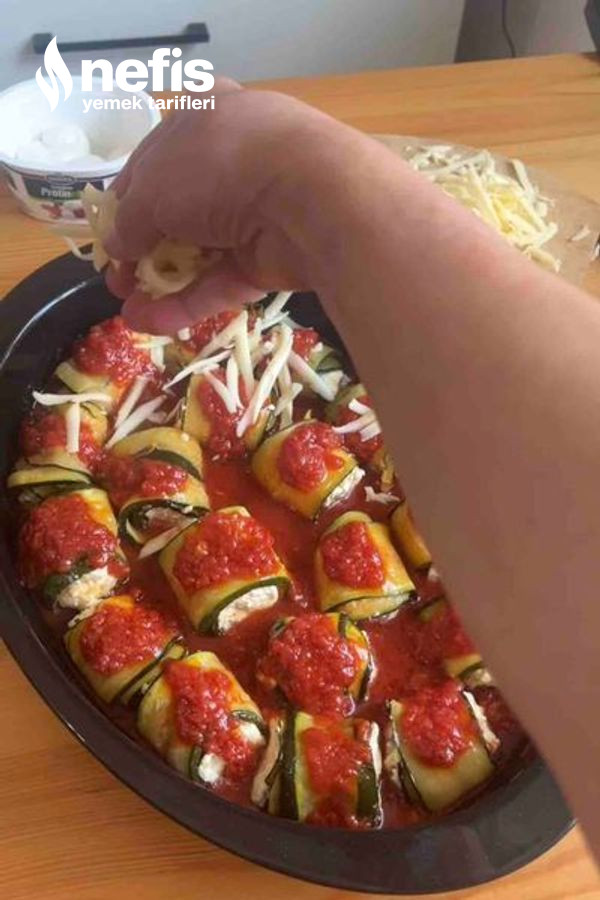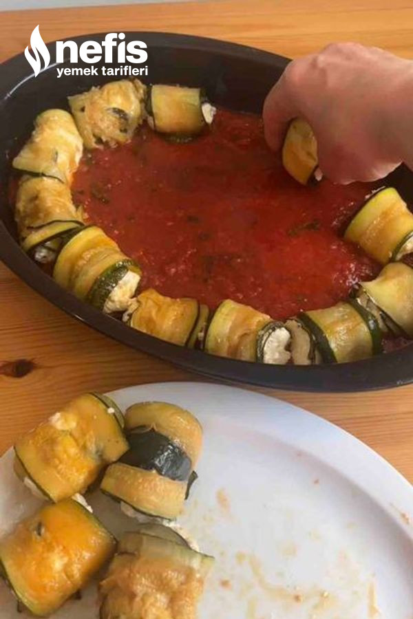 - Fırına güçlü bir kabın ya da borcamın tabanını hazırladığınız domates sosuyla kaplayın, akabinde kabak rulolarını içine yerleştirin.