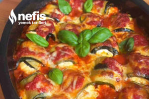 - Fırına güçlü bir kabın ya da borcamın tabanını hazırladığınız domates sosuyla kaplayın, akabinde kabak rulolarını içine yerleştirin.