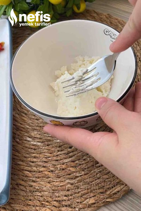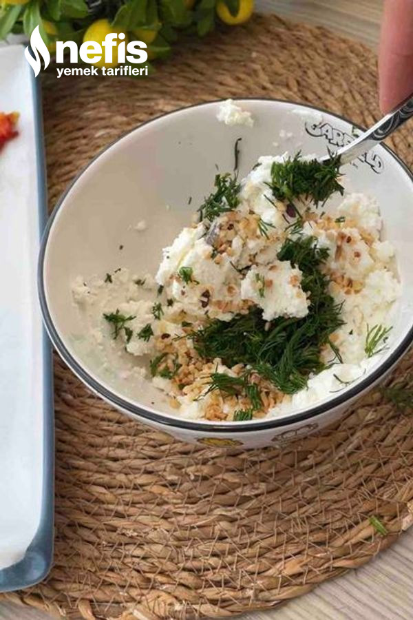 3. Peynir, labne, ceviz içi, ince kıyılmış dereotu ve zeytinyağını bir kapta güzelce karıştırdım.
