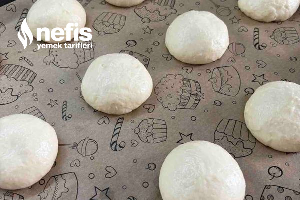 5. Yeteri kadar mayalandıktan sonra 16 eşit bezeye ayırın ve yuvarlayıp yağlı kağıt serili fırın tepsisine dizin.