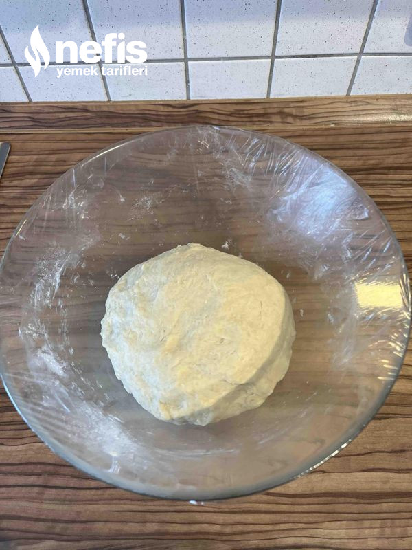 4. Son olarak göz kararı unu ekleyip, hamur kıvamı olacak formda yoğuralım ve streç sinema ile kapatalım.