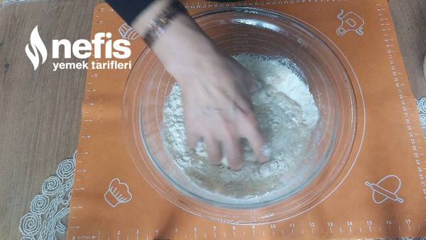 1. Yoğurma kabına su ve tuzu alıp karıştıralım unu ek ederek yumuşak ele yapışmayan bir hamur yoğuralım.