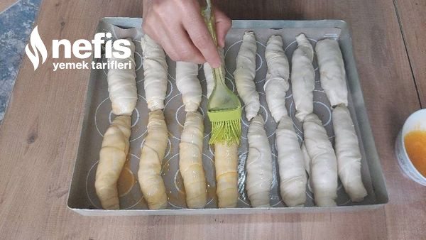 6. Üzerine yumurta sarısı ve dinlendirdiğimiz yağdan 2 yemek kaşığı kadar koyarak karıştırıp fırça ile üzerine sürerek 190 derecede evvelden ısıtılmış fırında böreklerimizi pişirelim ,sonrasında servis edelim afiyetler olsun ayrıntılı tanım için tıklayınız 👇.