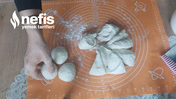 2. Hamuru 4-5 dakika düzgünce özleşene kadar tezgahta toparlayıp sonrasında 16 eşit bezeye bölelim.
