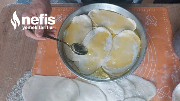 4. Tereyağını eritip soğuyunca içerisine sıvı yağını bekleyip karıştıralım ve bir tepsinin içerisine bezeleri alarak her katına sıvı yağ tereyağı karışımından dökerek üst üste koyup bezeleri 20 dakika dinlendirelim .