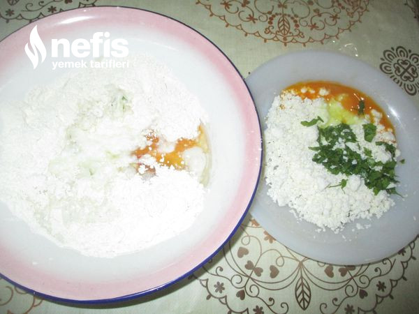 - Çukur bir kaba unu koyalım ,ortasını havuz yapalım yumurta, yağı ,sirkeyi ,yoğurdu suyu ,kabartma tozu koyalım hamuru yoğuralım.
