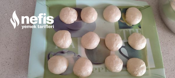4. Hamuru yarım saat dinlendirin küçük bezeler hâline getirin ve 15 dk dinlendirip bezeleri üstünü bastırarak açın .