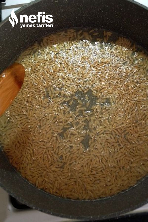 - Tereyağını tencerede erittikten sonra arpa şehriyeyi ekleyip kavuruyoruz. ( daha çok teflon tencereler tercih edelim).