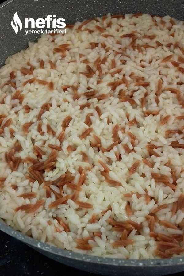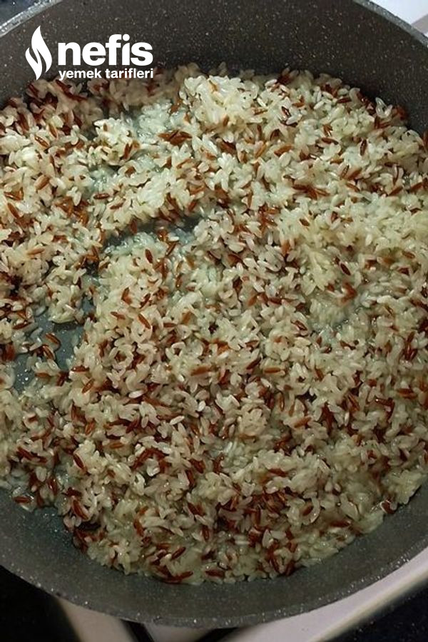 - Yıkadığımız pilavları ekleyip kavurmaya devam ediyoruz. ( pilavları düzgünce kavurmak önemli).