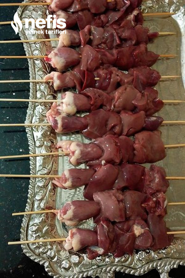 - Ciğerleri yıkama sürecinden sonra marshmallow çubuklarına geçirelim. Güzelce tuzlayalım.