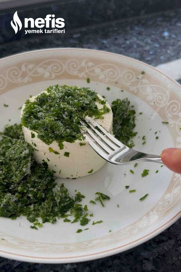 - Peyniri ince doğranmış maydanozla ezerek karıştırın.