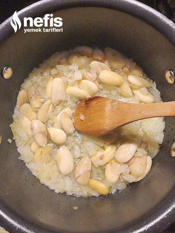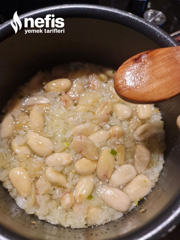 3. Yarım çay bardağı zeytinyağında yemeklik doğranmış kuru soğan sotelenir.