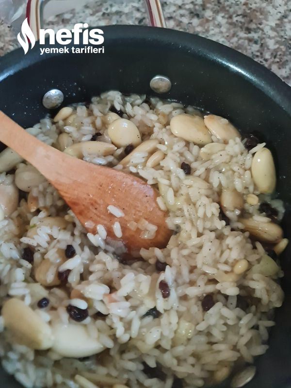 6. Üzerlerine 1 çay bardağı su eklenir ve yarı pişmiş pilav elde edilir.