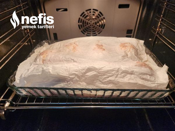 12. Sonra üzerindeki kağıt alınarak üzeri kızarana kadar denetimli bir biçimde pişirilir. Afiyet olsun.