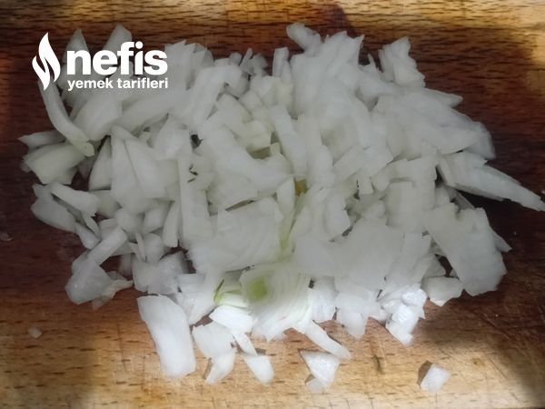 - Tencereye yahut tavaya sıvı yağımızı alalım ,soğanımızı ek edelim 2 dakika kavuralım.
