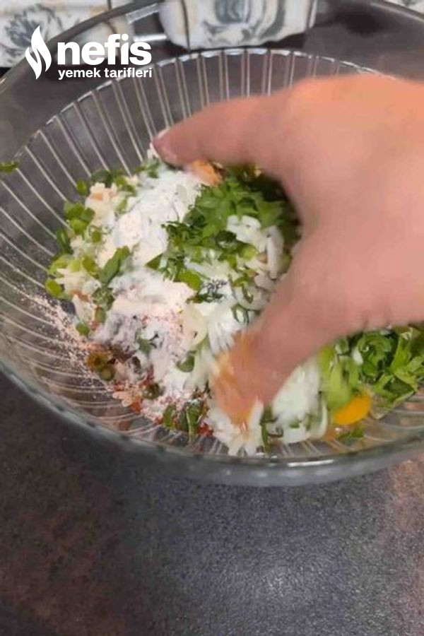 - Üzerine ince kıyılmış taze soğan yapraklarını ve kalan materyalleri ekleyip güzelce harmanlayın.
