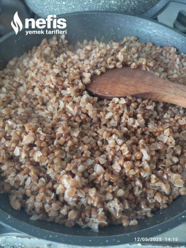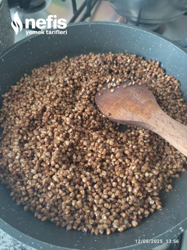 - Tereyağını tavada eritin, hafif kızınca karabuğdayları ekleyin hafif kavurup küçük ocağa alın.