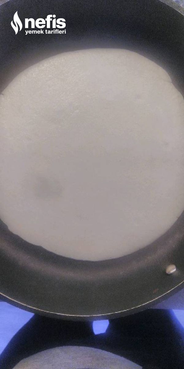 5. Tavanın altını yakıp biraz ısınınca karışımdan bir kepçe koyuyoruz ve tavaya yayıyoruz.