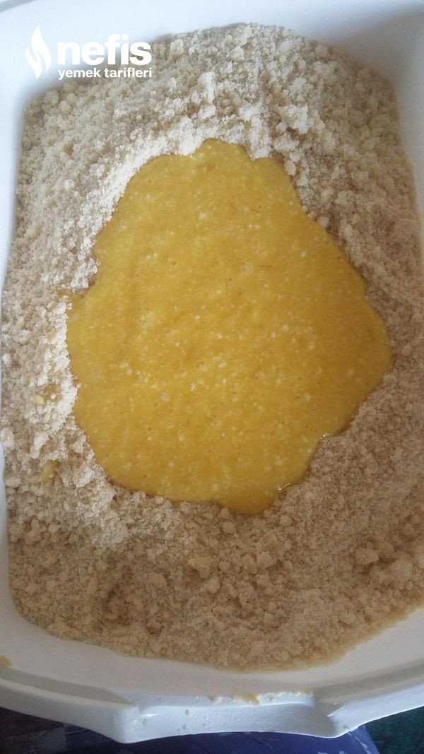 4. Sora bu karişımı umacın içine boşaltıp karişdirin ve tepsiye dökün.