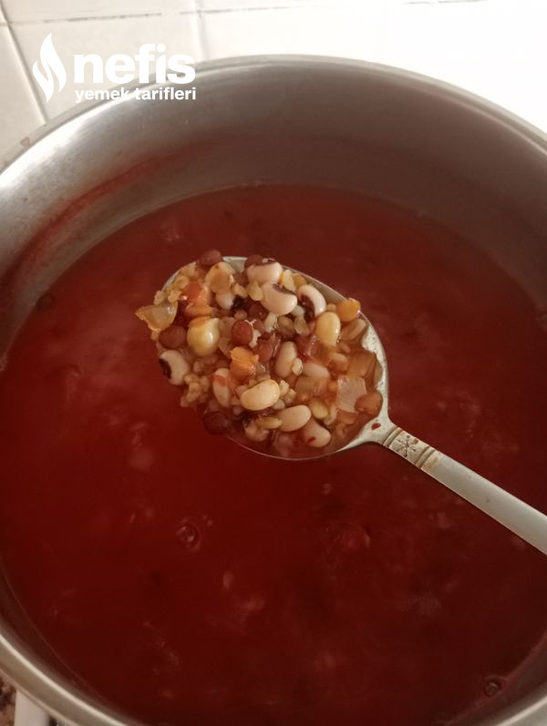 - Pişince içine haşlanmış börülce, haşlanmış nohut ve bulgur konulur karıştırılır.
