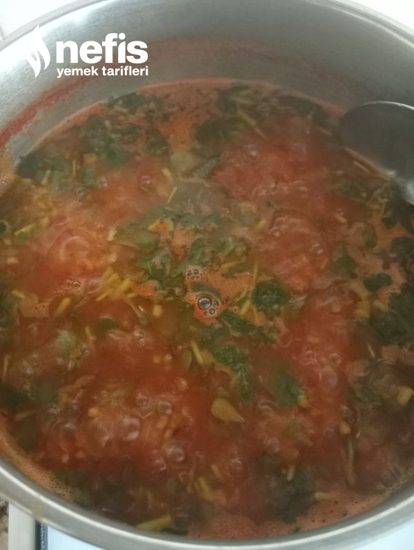 - Hemen gerisinden karışık salça eklenir.Karışık salça yoksa yarım kaşık biber yarım kaşık domates salçası konulur.Karıştırılır şeker eklenip kaynamaya bırakılır.