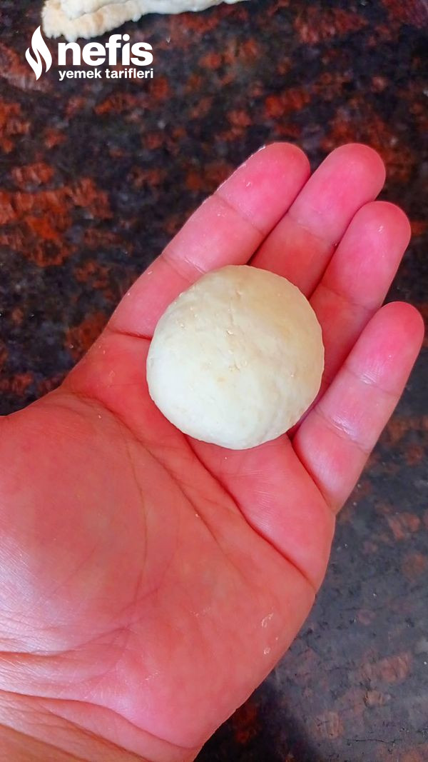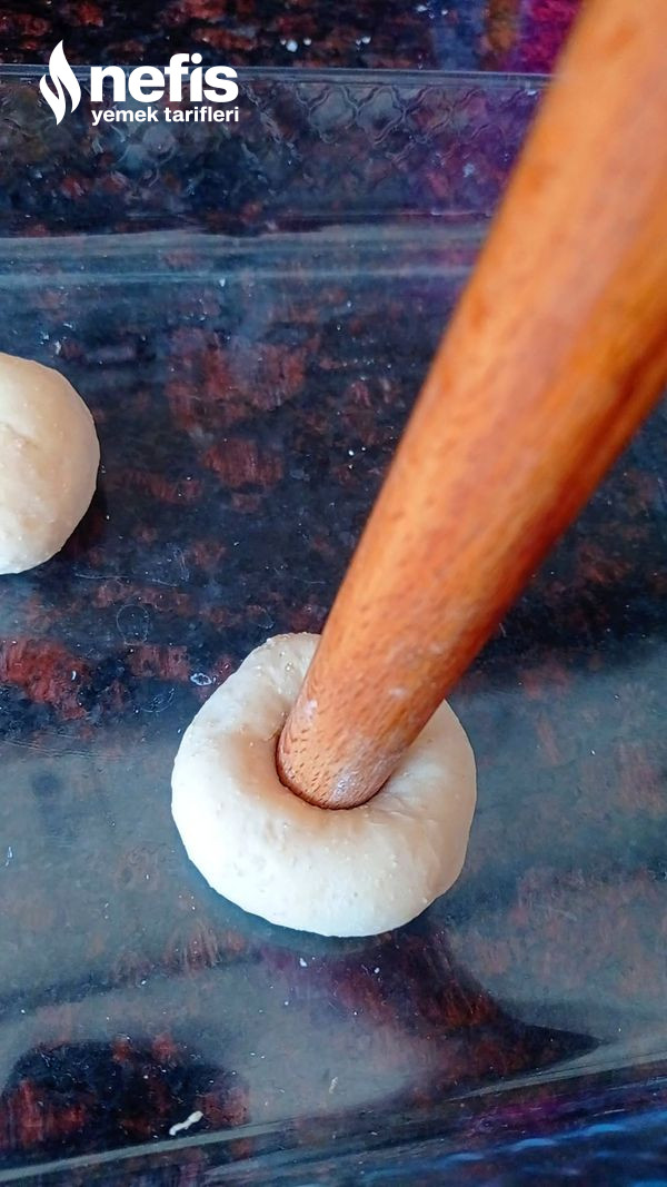 4. Daha sonra dinlenen hamurdan bezeler oluşturalım sonrasında ucunu una batırdığımız oklava ile ortalarına delikler açalım bu delikler sayesinde hamurlarımızın içerisi daha hoş pişecektir.